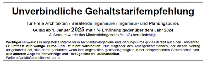 Unverbindliche Gehaltstarifempfehlung 2025 für Architekten-, Ingenieur- und Planungsbüros